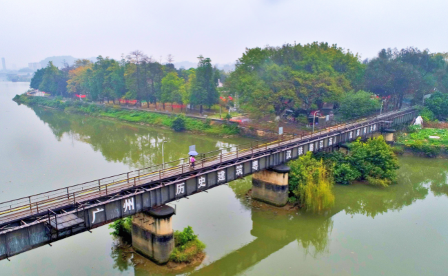 “轰隆隆……”伴着长长的火车鸣笛声,一列在京广铁路上行驶的高铁跨过广东省广州市白云区江高镇爱国东路和流溪河。不远处就是粤汉铁路流溪河大桥遗址,现仍是连接两岸社区、方便群众出行的重要通道。